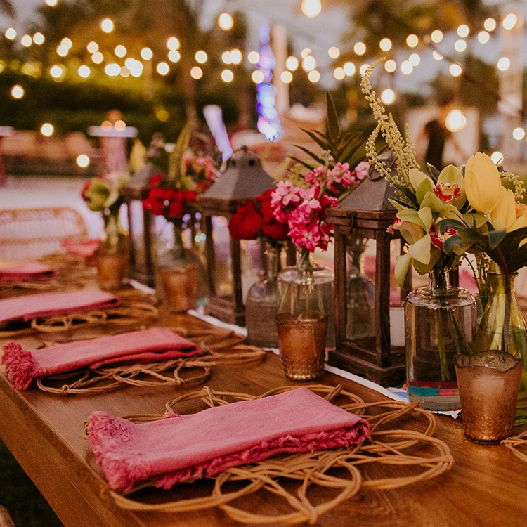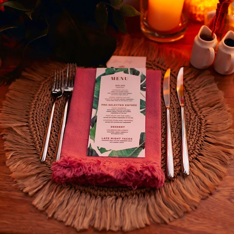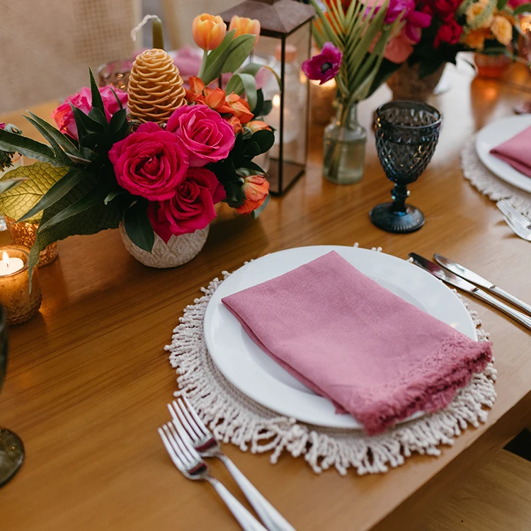 Magenta cotton fringe napkin with lace
