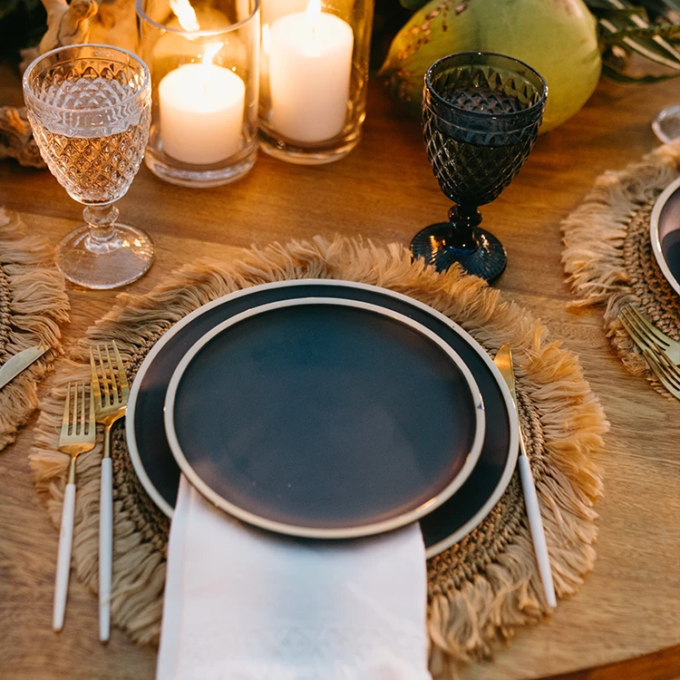 Natural fringe macrame charger.