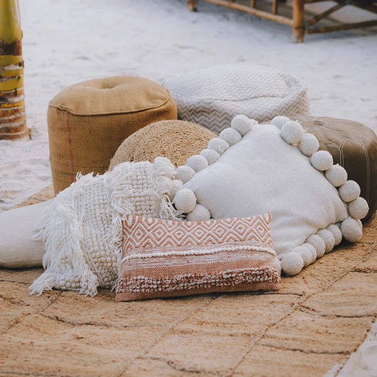 Assorted style and sizes of camel pillows.