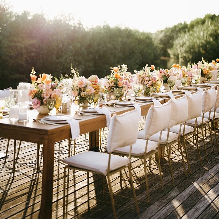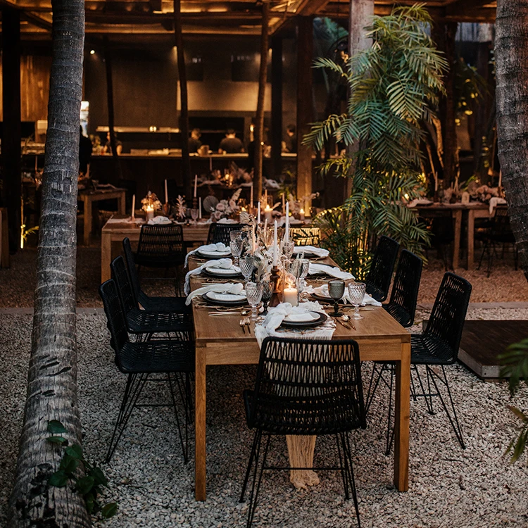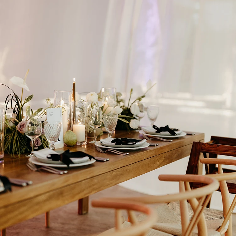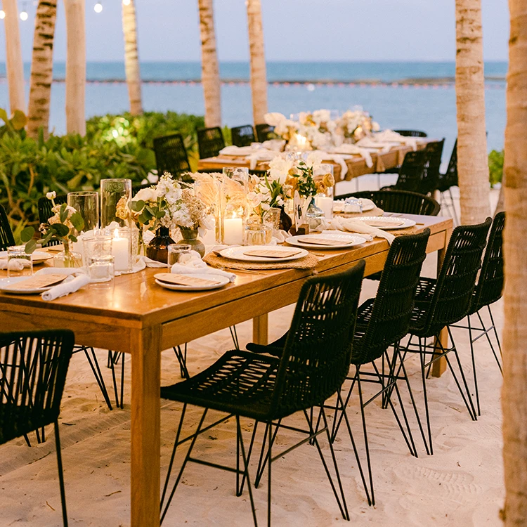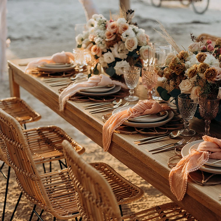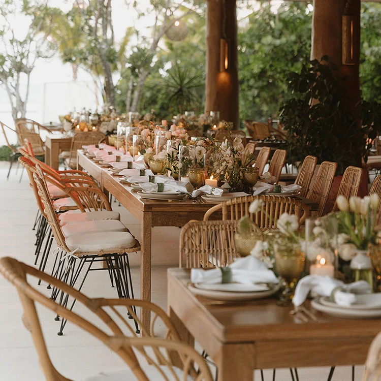 Rectangle light wood dining table. Seats 8 to 10 people.