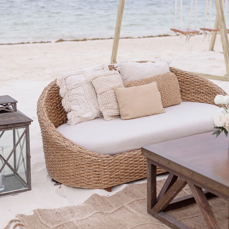 Natural wicker sofa / available with black cushion.