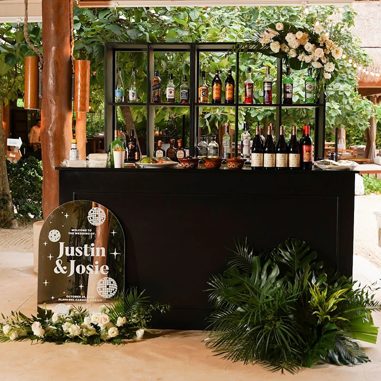 Black wood bar / DJ booth.