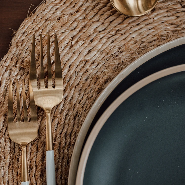 white and gold flatware